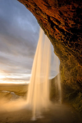 genommen an den Seljalandsfoss und seine "Nachbar-Wasserfälle", von denen zumindest einer genauso spektakulär ist, da er in eine kleine Schlucht stürzt, in der man sich wie in einer Höhle aus
